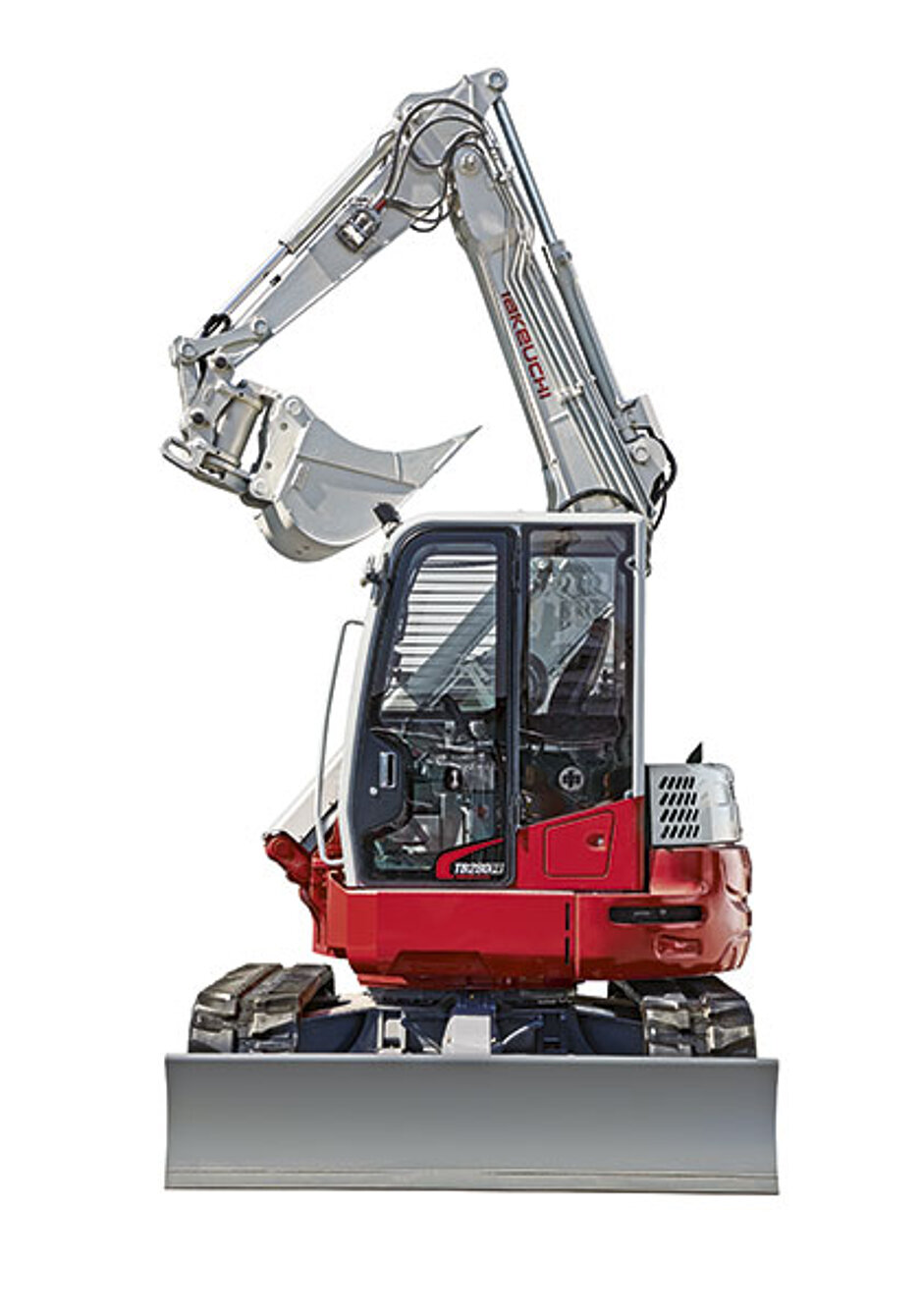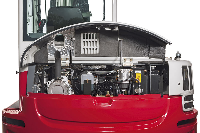 Der nach oben verlegte Auspuff verhindert die Beschädigung von Hausfassaden und Hecken. Der TB 280 FR verfügt über einen Common-Rail-Diesel mit 49,6 kW. Die Abgasreinigung erfolgt durch einen Katalysator DOC sowie einen Dieselpartikelfilter DPF. Durch die kippbare Kabine lassen sich Servicestandzeiten verkürzen und somit Kosten reduzieren.