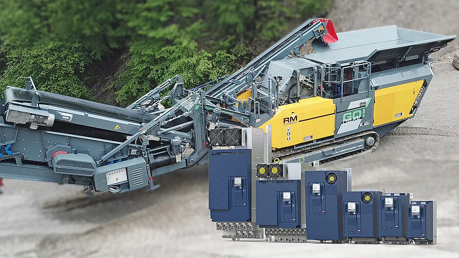 Die Anforderungen bei Rubble Master waren klar: Die Geräte müssen robust und klein, aber gleichzeitig leistungsfähig und hocheffizient sein. »Mit dem neuen Produkt setzen wir Standards in der Elektrifizierung unserer Branche«, erklärt Martin Kurcz bei Rubble Master, »und dafür ist KEB der richtige Partner.« In den Brechern, mit 15 t bis 40 t echte Schwergewichte ihrer Branche , setzen die Experten aus Oberösterreich auf den F6 in Baugröße sieben mit einer Leistung von bis zu 200 kW. Insgesamt reicht die Leistungsspanne des F6 von 2,2 kW bis 450 kW. In Kombination mit den Drehstrom-Asynchronmotoren ergibt sich die perfekte Lösung für Rubble Master.