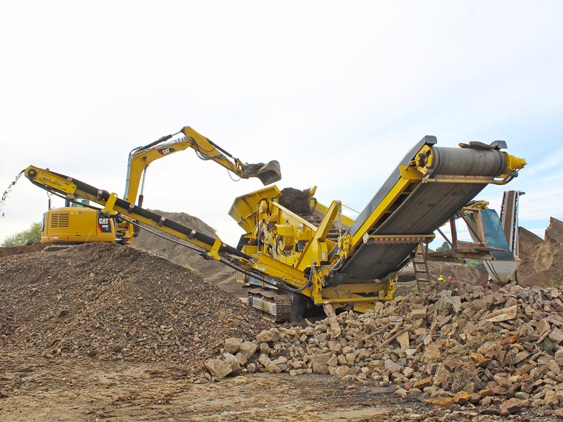 Besonders sensibel sind Transportgewichte bei den kompakten Allroundern der 250 bis 300-t/h-Klasse. Hier zeigt Keestrack seinen erst im vergangenen Jahr vorgestellten vollhybriden Prallbrecher R3e mit Eindeck-Anbausieb und Überkornrückführung (ges. 32 t) sowie den Backenbrecher Keestrack B3e mit neuem unabhängigem Vorsieb. Die elektrisch angetriebene Doppeldeck-Einheit (oben 1,6 m²; unten 1,2 m²) optimiert Effizienz und Verschleißverhalten des 1000 x 600-Backenbrechers, als nach wie vor größtem Aggregat innerhalb der 30-Tonnen-Klasse. Die elektrische Ausrüstung der überwiegend diesel-hydraulisch angetriebenen Anlage umfasst einen 42,5 kVA-Generator für die Aufgaberinne, das Vorsieb, alle Bandantriebe und Nebenaggregate sowie den 16A-Plugout-Anschluss für nachgeschaltete Siebe oder Haldenbänder.