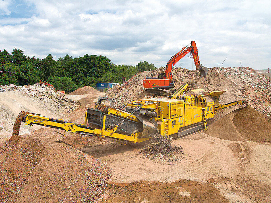 Seit einigen Jahren ist der große »Destroyer« als R6e zudem in diesel-elektrischer Hybrid-Version mit Elektromotoren an Förderbändern und Siebkomponenten erhältlich. Seit drei Jahren bietet der Keestrack R6e mit 250-kW-Elektromotor für den Brecher und elektrischem 110-kW-Antrieb für die Bordhydraulik optional auch den vollelektrischen Plug-In-Betrieb ab Netz. Dank Onboard-Diesel bleiben die Großbrecher weiterhin flexibel, allerdings lassen sich nach Anbieterangaben gerade im semi-stationären Einsatz bis zu 45 % Energiekosten einsparen. Dieser Vorteil schlage sich, so Keestrack, auch in den Verkaufszahlen nieder: 2016 entfielen 80 % der platzierten R6 auf diesel-elektrische bzw. vollelektrische Platzierungen. In diesem Jahr habe man die 2016er-Gesamtstückzahl bereits zur Jahresmitte erreicht – 90 % davon in hybrider oder vollhybrider Ausführung.