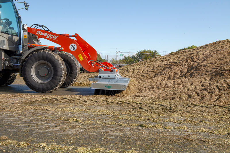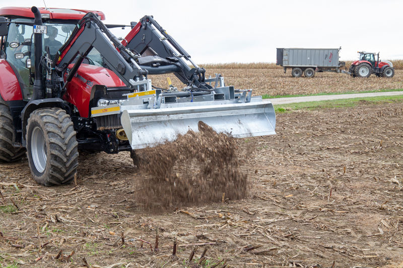 Fliegl-Produkte wären aber keine Fliegl-Produkte, gäbe es nicht die vielzähligen Anpassungsmöglichkeiten. Für nahezu jedes Trägerfahrzeug bietet das Agro-Center eine entsprechende Aufnahme, ganz gleich ob für Euronorm-, Rad- und Teleskoplader-, Bagger- und Stapleraufnahmen sowie eine Ballenklammer- und Greifschaufelaufnahme. Bei den Schilden kann zwischen einem Planierschild Robust mit einer Schürfleiste aus hochverschleißfestem Stahl HB450 oder Polyurethan und einem Schiebeschild mit Schrägstellung (besonders für den Winterdienst geeignet) ausgewählt werden. Selbst für den Frontanbau wurde an alles gedacht: So kann statt eines Planierschilds oder Schiebeschilds auch eine starre oder hydraulisch klappbare Schmutzsammelwanne montiert werden, die das gelockerte Material restlos aufnimmt und bis zum Ausladeort zuverlässig transportiert. Hier bleibt definitiv kein Wunsch offen!