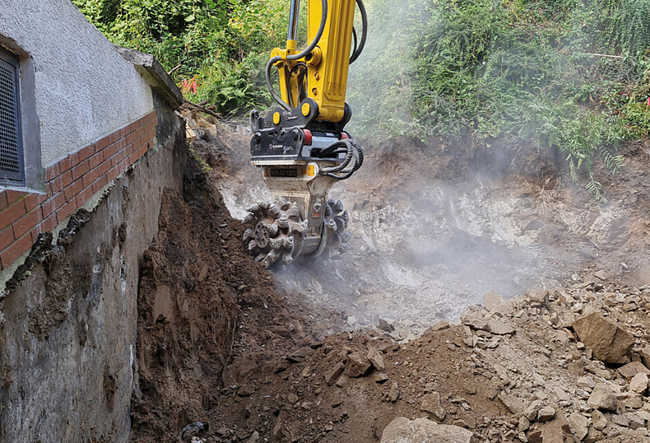 Nach ihrem ersten Einsatz bei MH Erdbau im harten hessischen Granitgestein will Unternehmer Michael Herold die Kemroc-Fräse neben Einsätzen beim Felsabtrag auch bei Abbruchprojekten verwenden. »Diese Anbaufräse eignet sich durch ihre geringen Vibrationswerte ganz besonders zum Abbruch von Fundamenten, die man nicht mit dem Hammer wegstemmen kann, weil schädliche Erschütterungen entstehen würden.« t