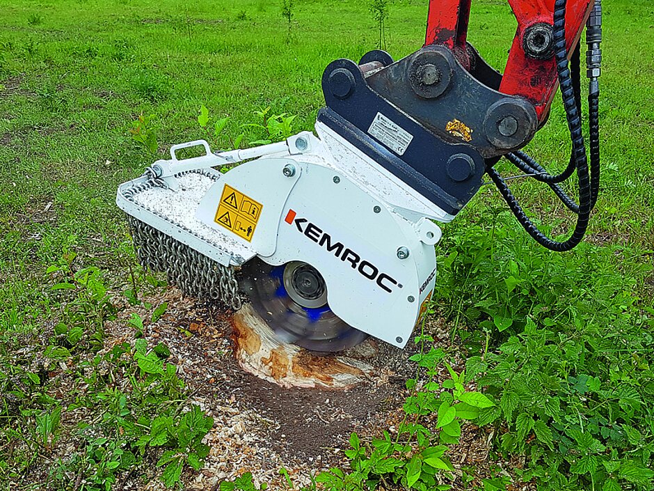 Eindrucksvoll will Kemroc seine Spezialfräsen außerdem auf seinem zweiten, deutlich größeren Messestand Em 18 auf der Aktionsfläche im Nürnberger Freigelände vorführen. Zu den im Einsatz dort gezeigten Kemroc-Anbaufräsen gehört die leichte Baumstubbenfräse KST 20 für Minibagger. Beim Profilieren von Natursteinplatten wird die Multifunktionsfräse ES 30 HD aus der Baureihe ES (Flexator) für Kompaktbagger zu sehen sein. Bei größeren Projekten im Garten- und Landschaftsbau, zum Beispiel beim Öffnen von Kanälen und Gräben, bewährt sich die live auf der Aktionsfläche gezeigte Kettenfräse EK 100 aus der Baureihe EK (Erkator) für Großbagger ab 18 t Einsatzgewicht. Mit ihren beiden seitlichen Schneidköpfen und der dazwischen umlaufenden Fräskette öffnet sie Gräben mit exakt definierter Grabenbreite.