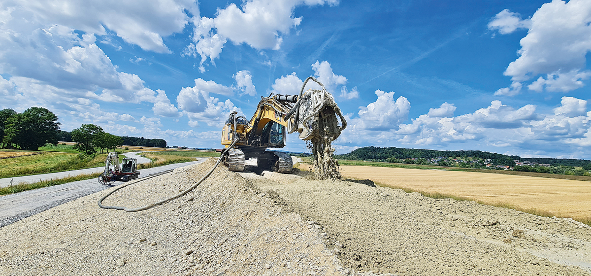 Die auf den Spezialtiefbau ausgerichtete Kemroc-Sparte Kemsolid feierte in diesem Jahr ihre Bauma-Premiere (siehe Seite 159). Das Unternehmen stellte aber auch bekannte und neue Spezialfräsen für den Baggeranbau vor. Mit diesen Maschinen sollen Experten im Abbruch und Recycling, im Bauwesen und in der Mineralstoffgewinnung noch mehr Wertschöpfung aus ihren Trägergeräten herausholen.