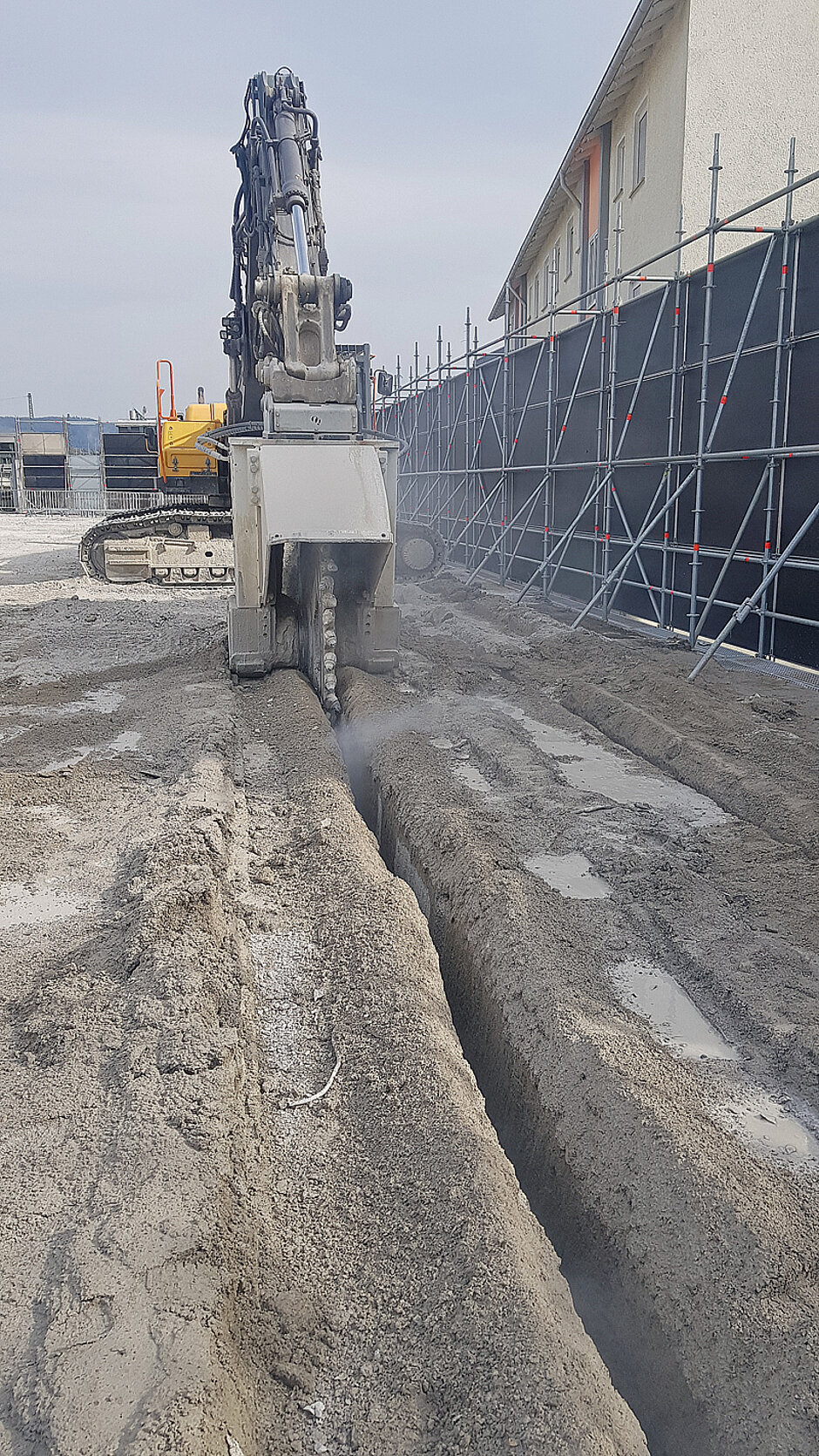 Das von CK verwendete Schneidrad DMW 220-1000 verfügt über eine Schneidtiefe von 1 000 mm. Nach seinem ersten Einsatz in Konstanz – dort wurde die 110 cm starke Beton-Plattengründung einer Klinik so schonend wie möglich für Maschine und Anwohner beseitigt – brachte das Schneidrad auch in Bad Cannstatt seine Qualitäten bei großen Schneidtiefen zur Geltung.