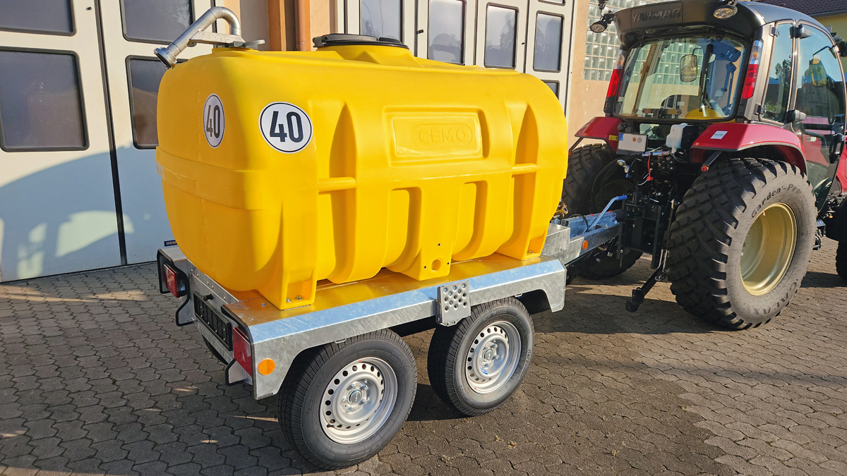 Erhältlich sind die Wasserfass-Anhänger in drei Varianten: Die Kommunalvariante »Aqua Runner« mit einem Fassungsvermögen von 2 000 l eignet sich aufgrund der schmalen Auslegung extra für den Betrieb hinter Kommunal- / Schmalspurtraktoren. Mit einer Außenbreite von nur 145 cm kann damit die Bewässerung auch auf Radwegen, Fußgängerwegen und in engen Anlagen effizient erfolgen.