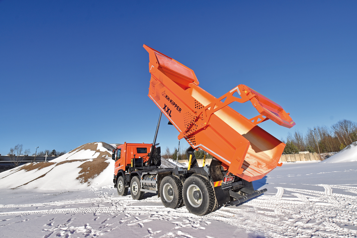 Die Gestaltung samt Hardox 500 TUF-Stahl des schwedischen Stahlwerks SSAB und viermal kleineren Anzahl an Schweißnähten soll bei dieser Lösung hohe Verschleißfestigkeit, Härte und Schlagzähigkeit mit sich bringen und gleichzeitig für eine maximale Lebensdauer sorgen. Durch das niedrige Leergewicht des Aufbaus können Sie die Betriebskosten, einschließlich des Kraftstoffverbrauchs, senken und die Produktivität steigern. Durch den Einsatz des HYVA-Kippzylinders wurde die Zeit für Heben und Senken der Kippbrücke auf 30 bis 35 Sekunden optimiert. Bei wiederholten Zyklen kann die eingesparte Zeit für eine größere Anzahl von Zyklen und damit für den Transport eine größere Ladungsmenge genutzt werden. Das Hydrauliksystem wird durch das System HYVA Smart ergänzt, das jeden Kippzyklus überwacht und den Fahrer dabei unterstützt, bessere Entscheidungen zu treffen und die Sicherheit und Effizienz vor und während des Kippvorgangs zu verbessern.