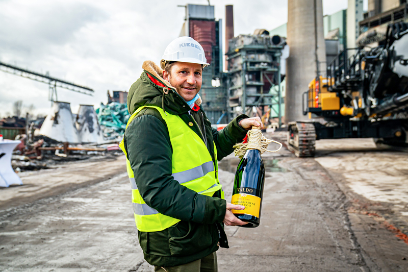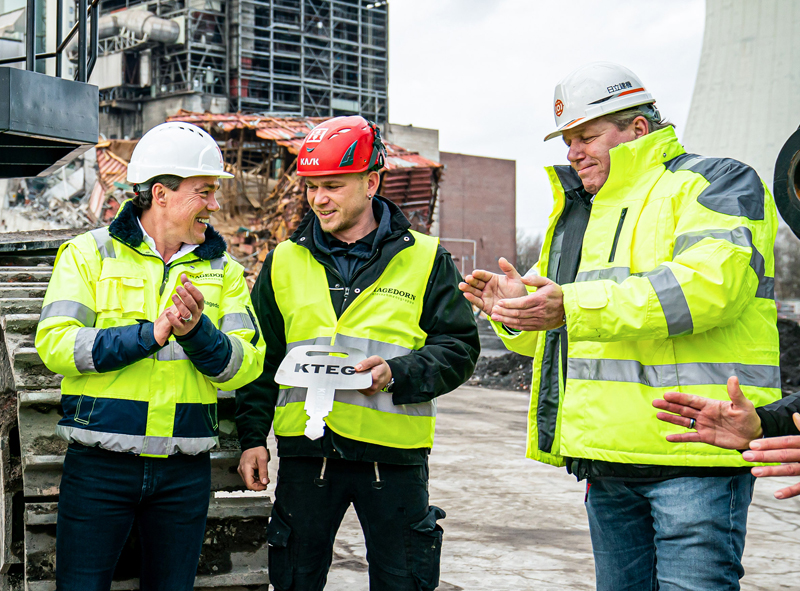 „Wenn in Deutschland neue große Bauprojekte entstehen, muss in der Regel zunächst ein Altbestand abgebrochen und das Gelände revitalisiert werden. Dabei kann sich auch nach einer Sprengung der weitere Abbruch durchaus noch in Höhen von mehr als 35 Metern abspielen. Auf so einer Baustelle stehen wir hier. Für solche Aufgaben braucht der Unternehmer die passenden Maschinen. Und hier ist KTEG der perfekte Partner. Mit unserer Erfahrung und Expertise sind wir darauf spezialisiert, ihm passgenau dieses Equipment zu anzubieten,“ erläutert Harald Thum, Geschäftsführer der KTEG GmbH, eine der Kernkompetenzen seines Unternehmens. „Nicht selten liegen die Anforderungen, wie auch hier in Lünen außerhalb des Rahmens. Wir bei KTEG entwickeln und bauen Lösungen für solche und andere Projekte in enger Abstimmung mit den Auftraggebern. Auch die Hagedorn Unternehmensgruppe ist bei uns fündig geworden und gemeinsam haben wir das Maschinenkonzept KMC in einer mehrmonatigen Projektphase punktgenau auf den Einsatz zugeschnitten.“