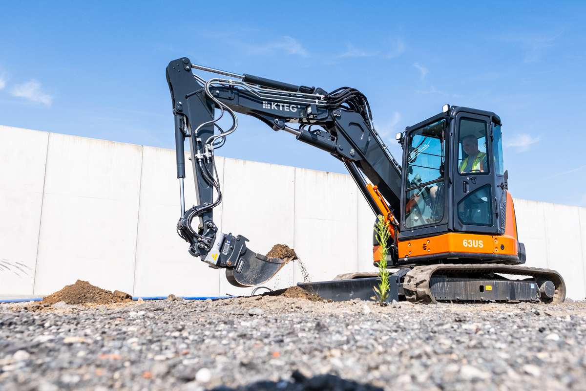 »Auf die Frage, wie Prozesse auf der Baustelle schneller laufen können, haben wir bei Kiesel mit der KTEG P-Line eine Antwort gefunden. Und nicht nur das: Mit dem Einsatz der KTEG P-Line können unsere Kunden auch deutlich mehr Profit erzielen«, so Bastian Mesmer im Gespräch. Das modulare System, bestehend aus Maschine, digitalen Assistenzsystemen, vollhydraulischem Rotationsschnellwechsler und bauteiloptimierten Anbaugeräten, bewältigt die Aufgaben, für die sonst Zusatzgeräte oder weiteres Personal nötig wären. Das heißt, Anbaugeräte können in Sekundenschnelle gewechselt werden und ein Bagger ist nicht mehr nur ein Bagger, sondern auch ein Radlader, ein Hebegerät oder ein Geländestapler. »Wir werden den KTEG 63US-6 der Baubranche auf der GaLaBau im September vorstellen.« Bastian Mesmer ist stolz auf die neueste KTEG-Entwicklung, die zeigen soll, wie die einzelnen Konzerngruppen zusammenwirken und sich dadurch klar als Systempartner erweisen.d