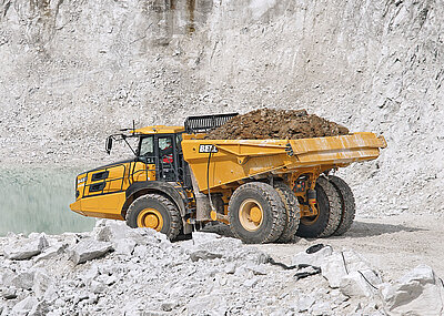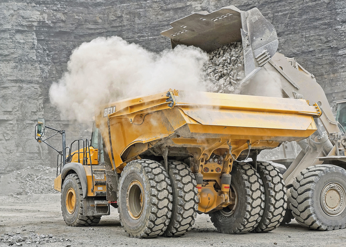 Bereits seit einigen Jahren setzt Kurz Baumaschinen bei seinen Großgeräten konsequent auf die Zusammenarbeit mit Kiesel. Alle schweren Kettenbagger ab ca. 30 t Betriebsgewicht sowie die Großradlader ZW310, ZW330n und ZW370 kommen von Hitachi. Im Ladebetrieb mit den ZX300 bzw. ZX350, den 50- bzw. 70-Tonnern ZX490 und ZX690 sowie dem Großbagger Hitachi ZX890 arbeiten insgesamt 15 knickgelenkte Muldenkipper von Bell Equipment – neben diversen 30- und 40-Tonnern insbesondere auch die dank hoher Nutzlastreserven besonders flexibel einsetzbaren Bell B45E mit nominellen 41 t Nutzlast.