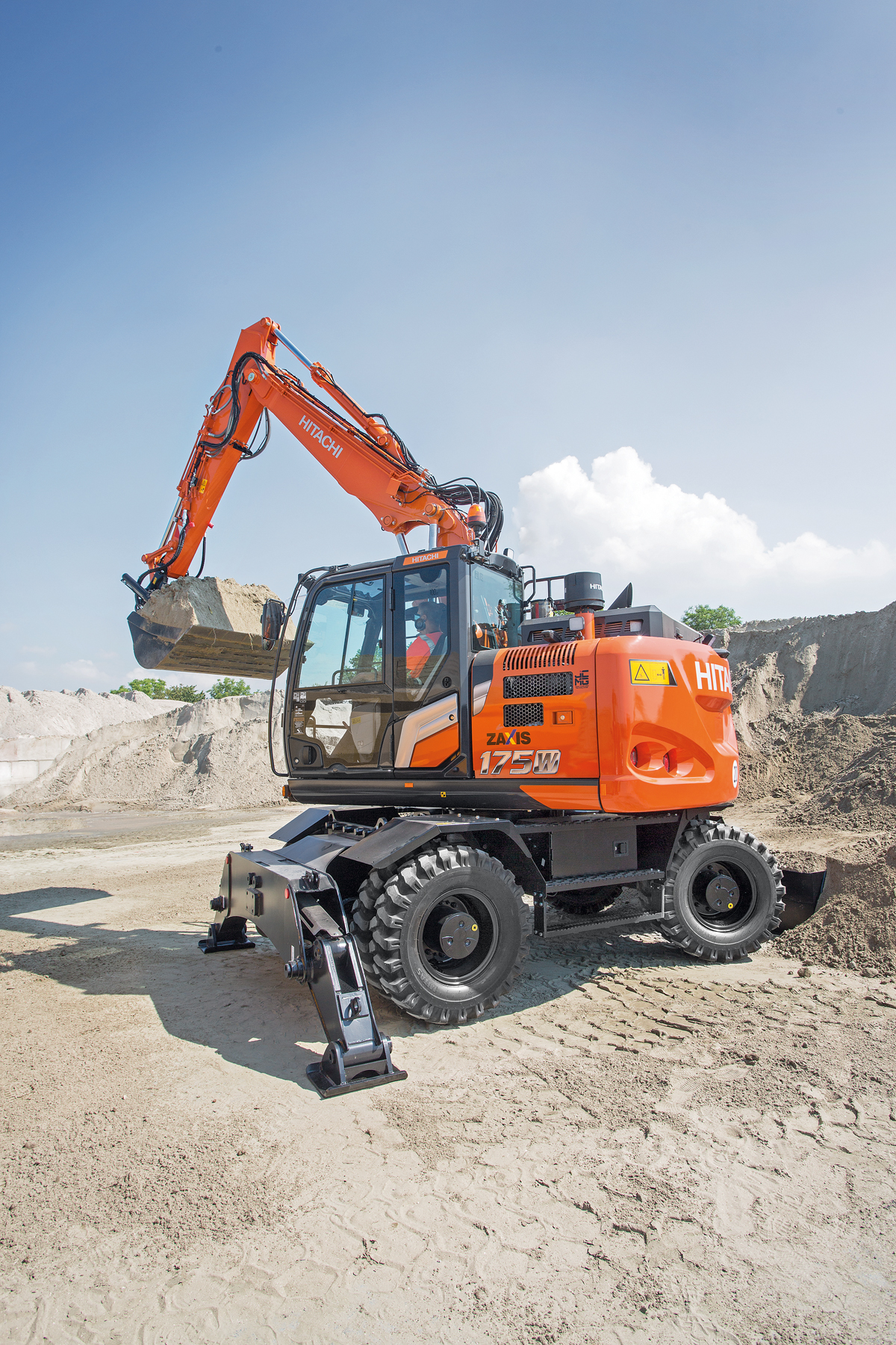 Wie die »ZW-7«-Radlader profitieren auch die Mobilbagger laut Hitachi von einer neu gestalteten Kabine, die höchsten Komfort und Qualität bieten soll – mit einem niedrigen Geräuschpegel und weniger Vibrationen als bei der vorherigen Generation. Der Sitz und die Konsole sind synchronisiert, um sicherzustellen, dass der Fahrer am Ende des Arbeitstags weniger müde ist. Eine weitere Gemeinsamkeit mit den »ZW-7«-Radladern ist die hervorragende Sicht auf die Baustelle, die durch das »Aerial Angle«-Kamerasystem, die schlanke Lenksäule (mit größerem Verstellwinkel) und das kleinere Lenkrad noch verbessert wird. Damit die Fahrer auch unter schwierigen Bedingungen sicher und produktiv arbeiten können, sind die »Zaxis-7«-Mobilbagger mit LED-Arbeitsscheinwerfern, einem Scheibenwischer mit größerem Wischbereich und größeren Spiegeln ausgestattet. Für zusätzliche Sicherheit sorgen die Verriegelung des Oberwagens und des Frontanbaugeräts, wenn sich die Maschine in der richtigen Position befindet, um auf öffentlichen Straßen fahren zu können. Wilbert Blom, Produktmanager für Mobilbagger bei HCME, sagt: »Die ›Zaxis-7‹-Mobilbaggerreihe ist für eine lange Lebensdauer ausgelegt. Die neuen Modelle wurden eingehend getestet.«d