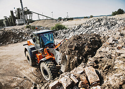 An den Hitachi-Baggern schätzen die Mitarbeiter von MW Construct vor allem, dass sie viel Masse bewegen. »Damit verdienen wir schließlich unser Geld«, sagt Westerburg. Das Fahrverhalten der Maschinen sei hervorragend. »Meine Fahrer schwärmen immer wieder, wie standhaft die Geräte sind, wie viel sie heben und wie schnell sie schwenken können. Da stimmt einfach das Gesamtpaket.« Und Giant? »Einen Giant-Radlader hatten wir zunächst einmal in Miete«, erinnert sich Westerburg. Die Leistung während der Mietzeit war so überzeugend, dass man bei MW Construct die Maschinen nicht mehr missen will. »Der Giant hat eine hohe Traglast trotz kompakter Abmessungen«, erklärt Bernd Schmitt. »Damit lässt sich auch eine 1,2-t-Palette bewegen.« Die Kipplast liegt zudem bei etwa zwei Dritteln des Eigengewichts, was einer 1,8-t-Palette entspricht.