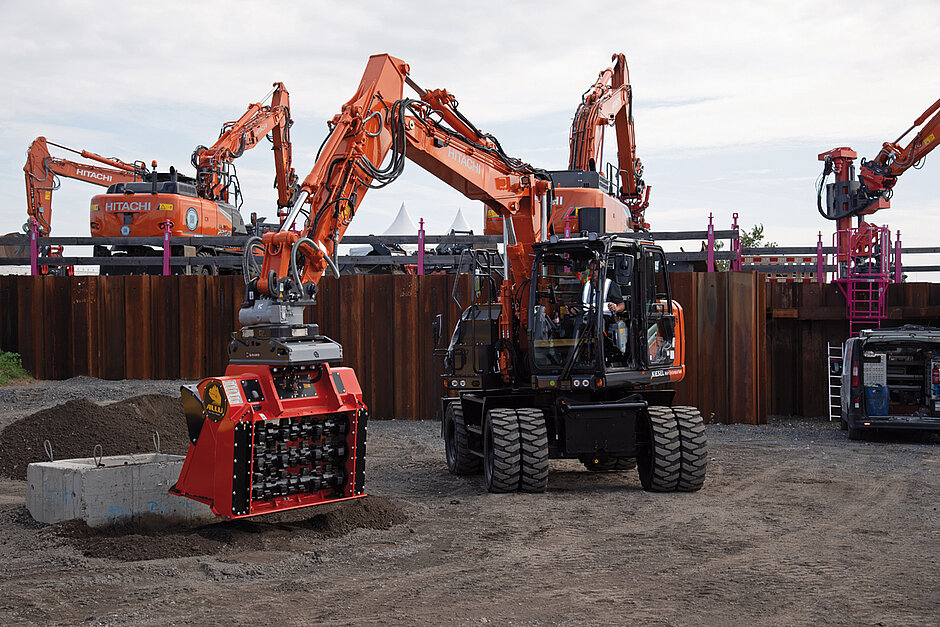 Das firmeneigene Logistikzentrum mit 60 000 lagernden Teilen garantiert eine schnelle Ersatzteilverfügbarkeit für die Kunden der gesamten Kiesel Group. Im Geschäftsfeld Hersteller agiert die KTEG GmbH als Innovator für Schlüsselmaschinen und Technologien rund um die Baustelle. Harald Thum, Geschäftsführer der KTEG: »Wir profitieren ganz klar von der Innovationskraft der Kiesel Group. Gleiches gilt für unser Joint Venture mit Hitachi Construction Machinery.« Das dritte Geschäftsfeld der Kiesel Group ist die Coreum GmbH, sie feierte ihr fünfjähriges Jubiläum bei den Praxistagen im Oktober (das bauMAGAZIN berichtet darüber in dieser Ausgabe ab Seite 118). Mittlerweile hat das Coreum über 55 Partnerunternehmen, zur eigenen Gastronomie kam im Frühjahr das Coreum Hotel hinzu. Zahlreiche Wechselausstellungen gibt es im Forum und Expo-Park Bau. In der Coreum Akademie werden täglich Maschinisten, Poliere, kaufmännische Mitarbeiter und Führungskräfte geschult.