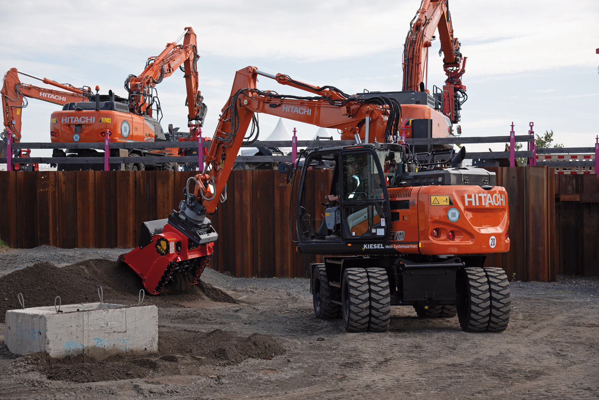Die Kiesel Trade ist Generalimporteur für Hitachi und Exklusivpartner für Bell in Deutschland, Österreich und Polen. Als Exklusivpartner für Fuchs werden viele europäische Länder betreut und für Giant der deutsche Markt bearbeitet. Hinzu kommen weitere Topmarken wie auch Weltmarktführer, die Teil des Partnernetzwerks der Kiesel Trade sind. »Kiesel Used« hingegen bietet als eigenständige Tochtergesellschaft eines der größten herstellerübergreifenden Gebrauchtmaschinenportfolios in Europa. Ergänzt wird die Dienstleistungskompetenz durch die zentralen Bereiche Customizing, Teile und Zubehör in Stockstadt. Hier werden die Maschinen kundespezifisch ausgerüstet.