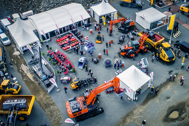 In einer Live-Demo präsentierte Kiesel ein gutes Beispiel für eine effiziente Kombination zweier Maschinen: Das Zusammenwirken von Hitachi-Gewinnungsbaggern und den Dumpern von Bell (siehe auch Seite 48). Beide Marken stehen mit ihren Maschinen für Langlebig- und Belastbarkeit. Zudem warten sowohl Hitachi-Bagger als auch Bell-Dumper mit ansprechenden Leistungswerten auf.