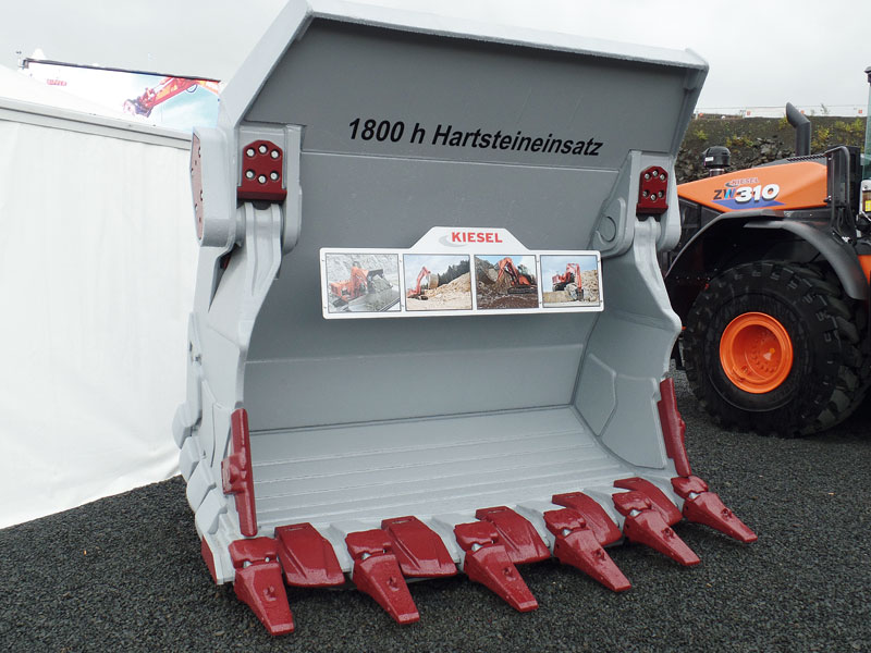 Bei der Arbeit im Steinbruch gelten besondere Rahmenbedingungen, die für die Leistung und Effizienz der eingesetzten Maschinen und Anbaugeräte wesentlich sind. Entsprechend legt Kiesel Wert auf besondere Robustheit und maximale Qualität bei Radlader, Bagger & Co. wie auch bei den Anbaugeräten. Kiesel arbeitet mit Marken wie Hitachi, Bell, XCentric und Rockwheel zusammen, die auch auf der Steinexpo präsent waren.