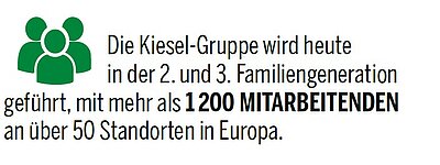 Für Helmut Kiesel dreht sich alles um seine Kunden. Damit prägt er maßgeblich die Firmenphilosophie: Der Kunde steht im Mittelpunkt. Während der Bauma im Oktober konnte man auf dem Kiesel-Messestand gut beobachten, wie aktiv Helmut Kiesel sich einbringt und auch hier seine Spuren hinterlässt, denn Gastfreundschaft wird im Unternehmen großgeschrieben. Heute hat das Kiesel-Bierzelt auf der Bauma Tradition. Dort treffen sich die Kunden: vom Fahrer, Mechaniker, Einkäufer bis hin zum Geschäftsführer.
