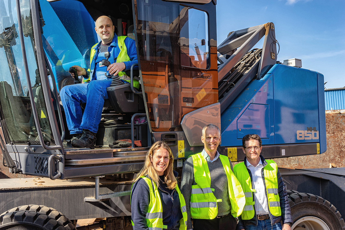 Der MHL850F Elektroumschlagbagger ersetzt eine dieselbetriebene Fuchs Hydraulikmaschine. Die Frage nach dem Vergleich und damit der Effizienz lässt Bernhard Scheil, geschäftsführender Gesellschafter des Unternehmens, zufrieden lächeln. Er selbst fährt seit vielen Jahren einen Tesla, sein Glaube an die Elektrotechnik ist – das Wortspiel sei erlaubt – nachhaltig. Seit drei Jahren arbeiten der Recycling-Experte und sein Team am „Change Process“ Diesel zu Elektro. Die Beratung durch Systempartner Kiesel spielt dabei für den Gesellschafter eine wichtige Rolle. So mussten erst einmal die Voraussetzungen geschaffen werden, um den Elektrobagger erfolgreich in Betrieb zu nehmen.