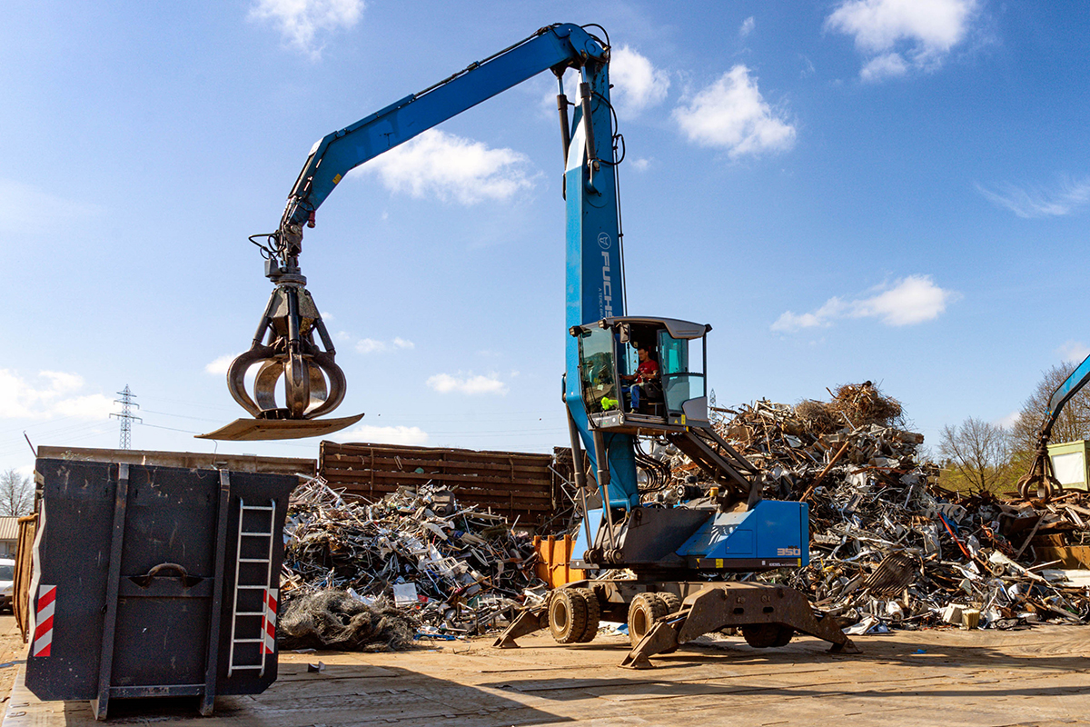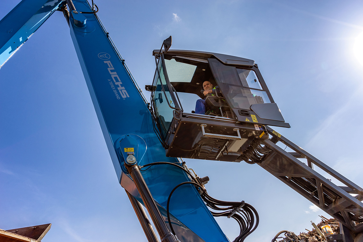 Die größte Herausforderung in der Anschaffung des Fuchs MHL850F bestand in der ausreichenden Stromzufuhr. Eine Schrottschere sowie der Holzschredder liefen bereits mit Strom, gespeist durch einen stationären Transformator auf dem Werksgelände. Die Anschaffung eines zweiten Trafos gewährleistet nun auch für den Fuchs die nötige Power. Laut Scheil sei die Akkutechnik noch nicht so weit entwickelt, einer Maschine mit diesem Anspruch – man bedenke allein den Energieaufwand durch das ständige Heben von Schwerlasten – volle Kraft für acht Stunden Einsatz zu garantieren. „Aber das wird kommen“, ist sich der Umschlag-Experte sicher.