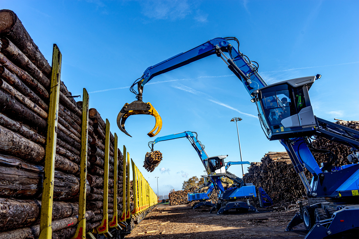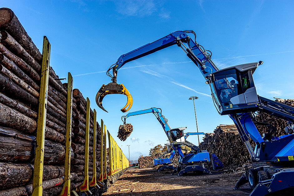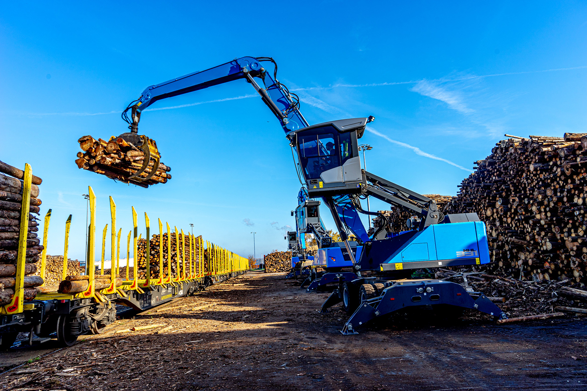 Der Blick auf das Betriebsgelände offenbart laut Kiesel ein Bild der Effizienz: Die „Füchse“ beladen Waggons, die Überführung der Holzmengen fließt im präzisen Taktschlag eines Metronoms. „Die Füchse sind perfekt auf unsere Arbeit abgestimmt. Kompakt, effizient, und mit 22 t und 11 m Reichweite wie gemacht für den Holzumschlag“, sagt Seemann. Die Maschinen arbeiten im Dauereinsatz, „in manchen Fällen sogar nachts“ und im 24-Stunden-Takt, wenn Schiffe gelöscht werden.