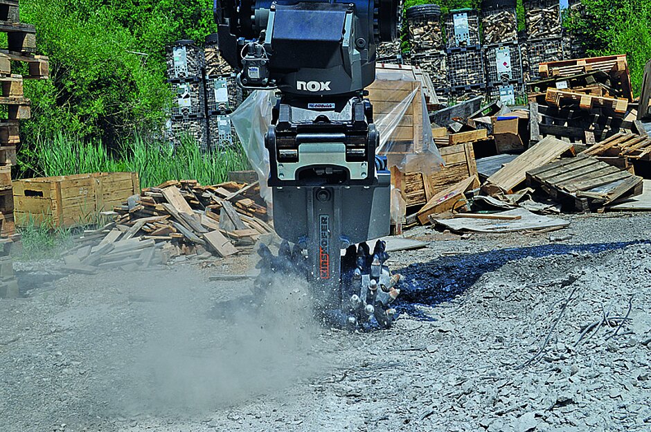 Kinshofer bietet mit der BRC-Pfahlkopffräse Brextor ein spezielles Anbaugerät zur Fertigstellung von Betonpfahlköpfen an, wie man sie etwa beim Fundament-, Bahn- und Straßentiefbau sieht. Wo mit schweren Presslufthämmern die Bewehrungseisen mühsam freigelegt wurden und der Überbeton im Kopfbereich abgetragen wurde, wird mit der Pfahlkopffräse BRC das Material schonend und präzise auf die gewünschte Höhe abgetragen. Die verbleibenden Betonreste zwischen den intakten Armiereisen der Anschlussbewehrungkrone können anschließend mit dem Pfahlkopfbeißer BRC LC110 vom Bagger aus ebenfalls herausgelöst werden. Dank der BRC-Pfahlkopffräse soll es zu keinen Beschädigungen und Abplatzungen außen am Pfahlkopf kommen, Risse und verbogene Anschlussbewehrung schließt Kinshofer ebenso aus. Die Tragfähigkeit des Pfahls wird erhalten, die Gefahr von Korrosion minimiert und negative statische Auswirkungen werden verhindert. Im kommenden Frühjahr will Kinshofer sein Fräsenprogramm noch um Flächenfräsen für überschaubare Arbeiten im Straßenbau erweitern.