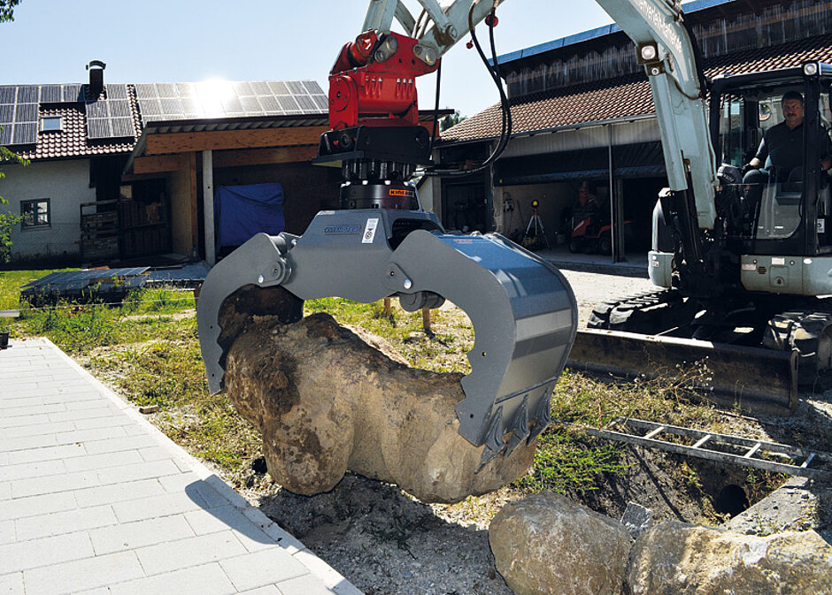 Auch die neuen leicht hexagonalen Schalen kommentiert er positiv: »Im Vergleich zu den bisherigen Schalen der A-Serie umgreifen sie die Steine besser – und die optionalen Seitenwände sind super bei Aushubarbeiten!«
