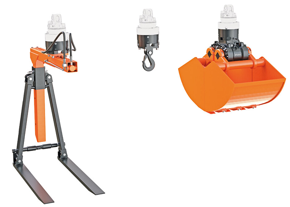 Für den Kompaktlader werden langlebige Erdbohrer angeboten, deren einteilige Antriebswelle im Gehäuse eingeschlossen ist, was das Abfallen der Welle verhindert und somit ihren Arbeitsplatz sicherer macht. Die Flächenfräsen sind selbstschmierend und verfügen über eine stufenlose Verstellung der Frästiefen, mechanisch oder hydraulisch. Ihre Seitenverstellung ist mechanisch oder hydraulisch möglich. Ein 8°-side-shift-Rahmen ist Standard.