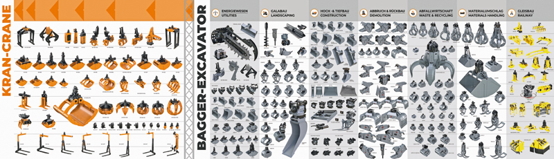 Außerdem gibt es für spezielle Aufgaben mit Kompaktbaggern wie etwa Sortierjobs, Brunnenbau, Kanalbau, Kabelverlegen, Wassergräben anlegen, Böschungen anlegen oder für Arbeiten an Gebüsch, Bäumen und Felsen die passenden Anbaugeräte: hydraulische Anbaugeräte wie etwa die Abbruch- und Sortiergreifer, Grabgreifer, universell einsetzbare Mehrzweckgreifer, Holzgreifer mit und ohne hydraulischer Kappsäge, Hecken- und Baumscheren, Baumstumpffräsbohrer oder Spalter, Erdbohrer, Asphaltfräse oder auch Verdichter.