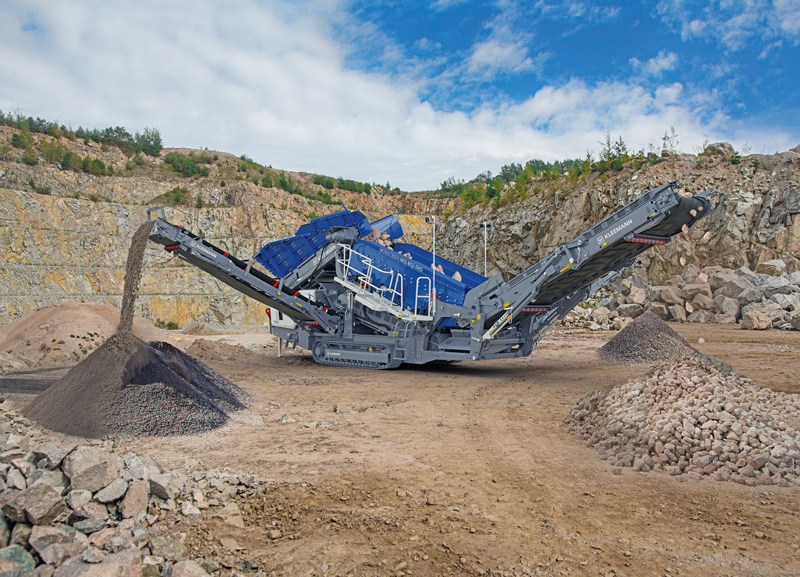 Der Brechprozess beider Anlagen wird automatisch über die innovative CFS-Beschickungsregelung so optimiert, dass das Material stets mit maximaler Effizienz durch die Maschinen gefördert wird. Dabei wird der Füllstand der Brechkammern überwacht. Erreicht der Füllstand eine definierte einstellbare Höhe, wird die Materialzufuhr der Maschine angepasst. Optional erhältliche Sonden am Brecherabzugsband und/oder Feinkornband der vorgelagerten Maschine überwachen den Füllstand der Aufgabeeinheit der jeweils nachgelagerten Maschine. Sicherheitstechnisch sind alle Brech- und Siebanlagen über Kabel miteinander verbunden. Wird im Notfall ein beliebiger Not-Halt am Anlagenzug gedrückt, werden alle Maschinen sicher gestoppt. t