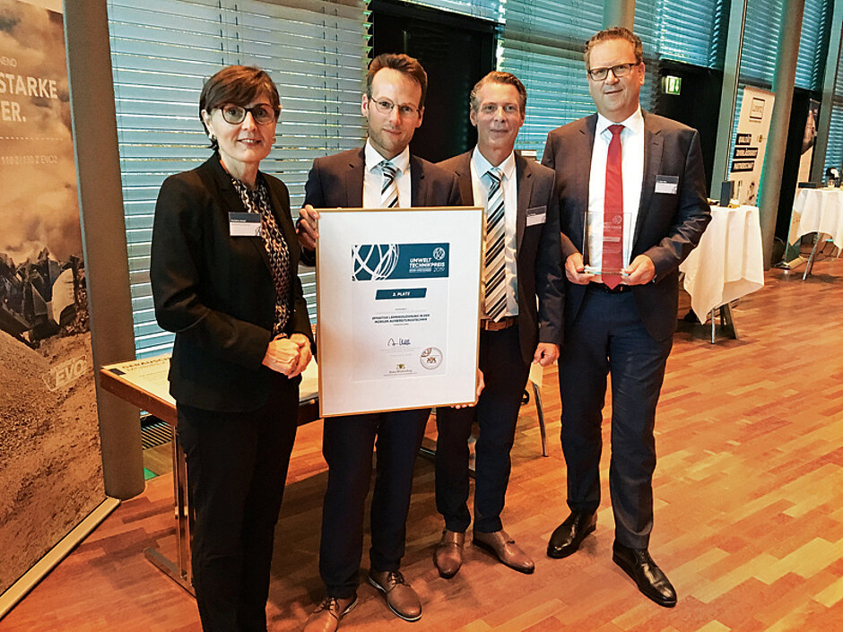 Zum sechsten Mal zeichnete das Ministerium für Umwelt, Klima und Energiewirtschaft Baden-Württemberg innovative Umwelttechniken aus, die einen bedeutenden Beitrag zur Ressourceneffizienz und Umweltschonung leisten. Unter mehr als 80 eingereichten Innovationen erreichte Kleemann mit der effektiven Lärmreduzierung in der Kategorie »Techniken zur Emissionsminderung, Aufbereitung und Abtrennung« den zweiten Platz.