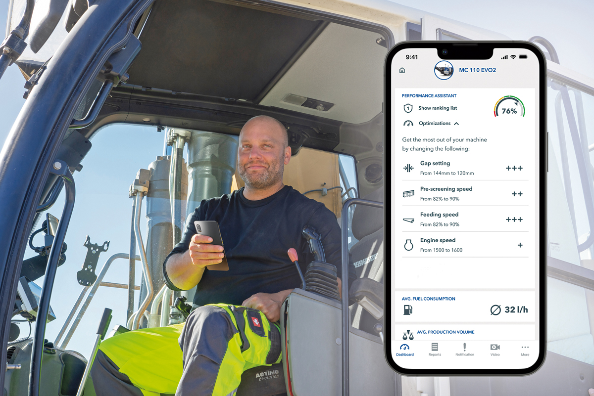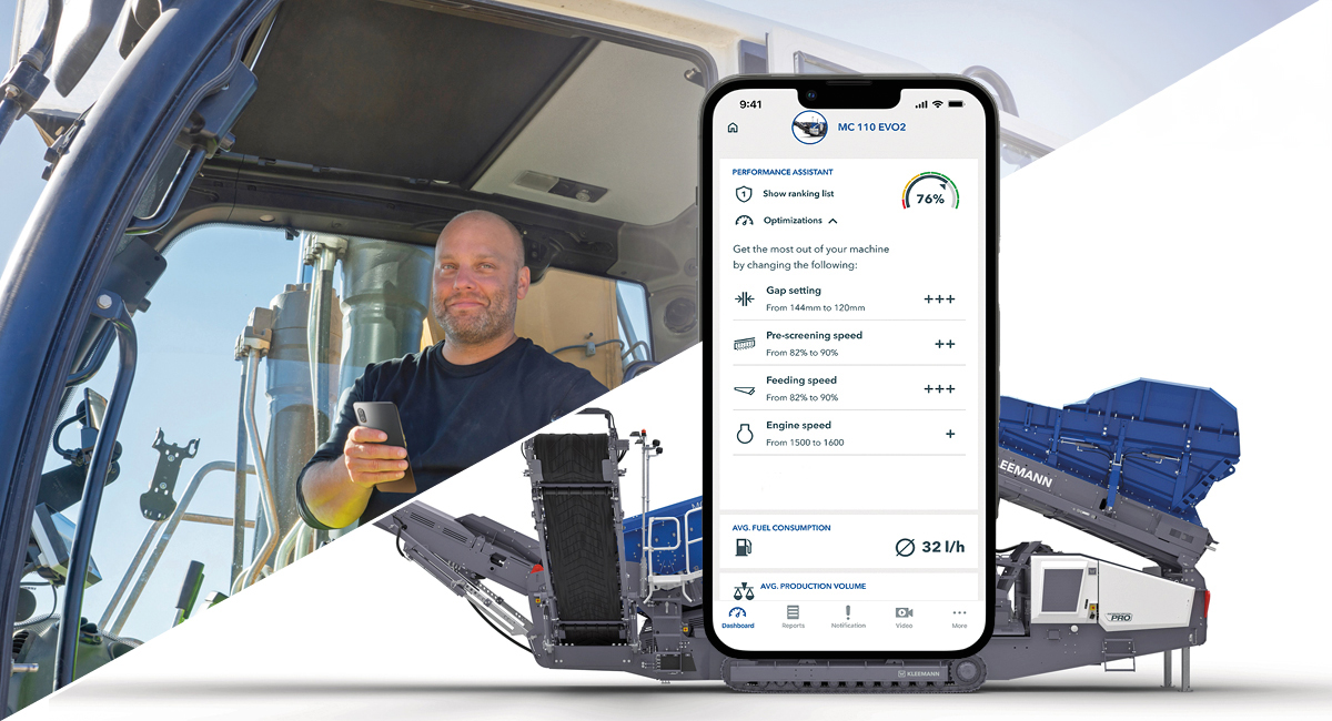 So unterstützt das Feature »Performance Assist« den Bediener dabei, die Produktionsleistung der Maschine konstant zu halten bzw. zu optimieren. Dank der neuen bi-direktionalen Steuerung »Spective Connect Control« kann direkt über die App auf die Anlage zugegriffen werden. Neu ist zudem, dass zur Bauma auch alle Kleemann Klassier- und Grobstücksiebanlagen über »Spective Connect« verfügen.