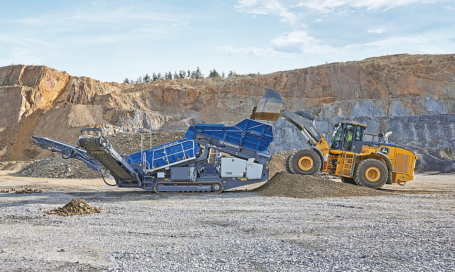 Mit ihrer Kompaktheit ist die MSS 502(i) Evo für den Bereich kleinerer Aufgabeleistungen bis 350 t/h optimiert. Ein großzügig dimensionierter Aufgabetrichter, eine Siebfläche von 5,4 m2 und ein breites Hauptaustragsband sorgen für eine optimale Materialführung. Für eine hohe Flexibilität in der Anwendung ist die Geschwindigkeit aller Förderbänder stufenlos einstellbar und ein einfacher Umbau von zwei auf drei Endkörnungen möglich. Der große Einstellbereich des Siebkastenwinkels (15,4 bis 20°) ermöglicht eine hohe Siebleistung bei gleichzeitig sehr guter Produktqualität. Hierzu trägt auch die große Auswahl an Siebmedien bei. Ob Fingerdeck für lehmigen Erdaushub oder Quadratmasche zum Klassieren von Ziersplitten – aus einer großen Auswahl an Siebmedien können die Siebdecks der Mobiscreen MSS 502(i) Evo für den individuellen Anwendungsfall passend belegt werden. Auch eine Mischbelegung ist möglich. Insgesamt bietet die neue Anlage eine umfangreiche Konfigurationsvielfalt, um sowohl Stand-alone als auch im Verbund mit weiteren Kleemann-Anlagen die Kundenbedürfnisse zu erfüllen.