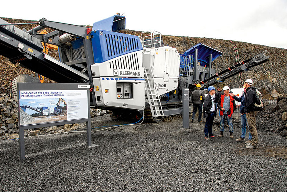 Die mobilen Brechanlagen der Pro-Serie von Kleemann wurden speziell für den anspruchsvollen Einsatz im Steinbruch entwickelt. Die neue Mobicat MC 120 Z Pro erzielt eine Leistung von bis zu 650 t/h bei einer maximalen Aufgabegröße von 1 100 x 700 mm. Das Herzstück der Anlage bildet der leistungsstarke Backenbrecher mit seiner langen beweglichen Brechbacke. Um einen bestmöglichen Materialfluss zu gewährleisten, passt das Continuous-Feed-System CFS die Fördergeschwindigkeit an den Füllstand des Brechers an.