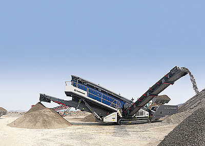 Die Mobicat MC 120 Z Pro verfügt über ein unabhängiges Doppeldecker-Vorsieb mit einer extra großen Siebfläche von 3,5 m². Durch die gründliche Absiebung der Feinanteile werden Produktivität und Endproduktqualität erhöht. Gleichzeitig wird der Verschleiß am Brecher reduziert. Das Mittelkorn kann über den Brecherbypass am Backenbrecher vorbeigeführt werden, was den Verschleiß weiter verringert.