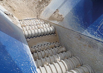 Um die Anlage schnell an verschiedene Anwendungen anzupassen, kann der Brechspalt mit wenigen Befehlen über das 12"-Touchpanel verstellt werden. Das ist nur eine der Anlagenfunktionen, die über das neue und intuitive Steuerungskonzept Spective bedient wird. Der Bediener wird Schritt für Schritt durch das Menü geführt. Das Verfahren der MC 120 Z Pro und die Regelung der Aufgabeeinheit erfolgt zusätzlich über die Funkfernbedienung.