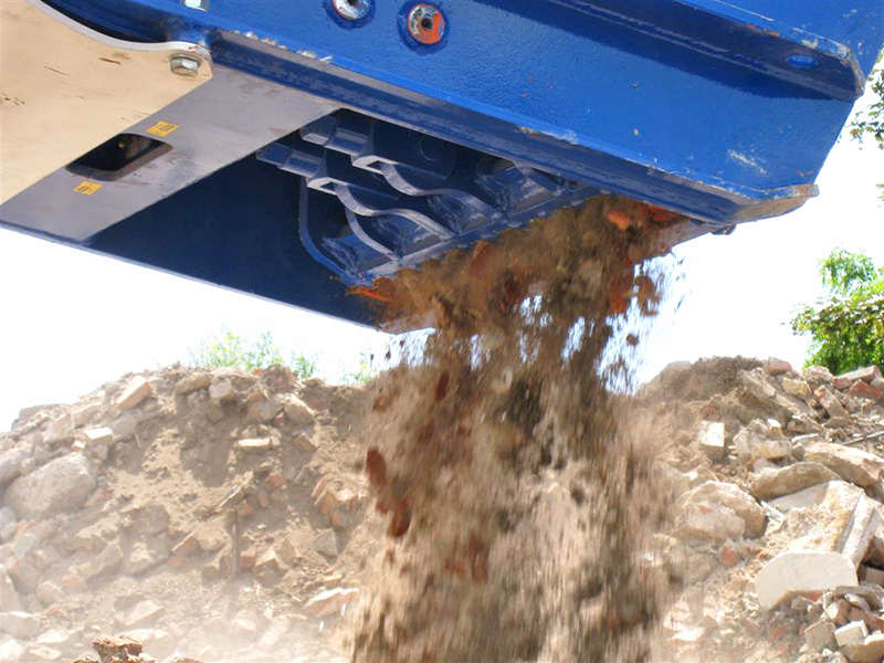 Der Sieblöffel der Serie SB wiederum zerkleinert, separiert und humusiert in einem Arbeitsgang – auch bei bindigen Materialien. Das Material wird hierbei über mehrere Siebwellen getrennt. Ein Grund für die hohe Siebleistung: Die abgerundeten Messer stoppen zu große Partikel und verhindern so das Blockieren der Wellen. Dadurch wird ein geringerer Krafteinsatz benötigt, der Verschleiß der Messer reduziert und gleichzeitig die Qualität des gesiebten Materials verbessert.