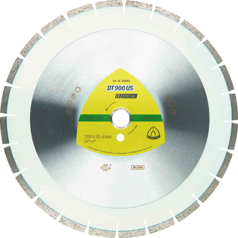 Obwohl die DT 900 US eine der nach Herstellerangaben leisesten Diamanttrennscheiben am Markt ist, soll sie technisch keine Kompromisse machen. Die lasergeschweißten Segmente sorgen für maximale Festigkeit zwischen Segment und Stammblatt und damit für höchste Sicherheit. Die enge Verzahnung der Segmente verhindert ein Pfeifen der Scheibe, sorgt für eine sehr hohe Standzeit und einen sauberen Schnitt. Der professionelle Anwender wird die technische Höchstleistung der Scheibe gepaart mit der hörbaren Lärmminimierung zu schätzen wissen. §