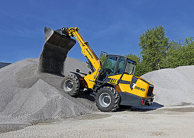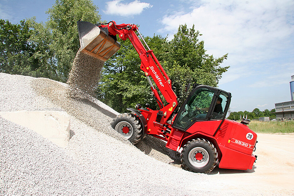 Mit einem Einsatzgewicht von 7 t bzw. 7,6 t fallen die neuen Teleradlader schwerer aus als ihre Vorgänger. Auffälliges Merkmal sind die stärkeren Achsen, das HTF-Antriebssystem (High Traction Force) umfasst auch andere Komponenten wie die Verstellpumpe mit höherem Betriebsdruck und besserem Wirkungsgrad. Als Ergebnis wurde die Schubkraft gegenüber dem Vorgängermodell um 40 % gesteigert. Somit sind die neuen Teleradlader auch zum Befüllen eines Maissilos gut geeignet. Schäffer schafft damit ideale Voraussetzungen für Betreiber von Biogasanlagen – auch für die Landwirtschaft ist die verbesserte Schubkraft interessant.
