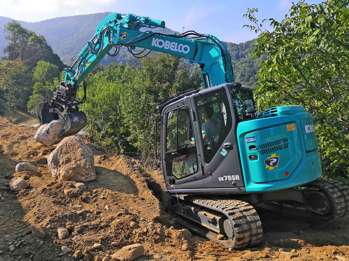 Gerade im Midi- oder Kompaktbereich zwischen 8 bis 10 t spielt Kobelco seine jetzt knapp dreißigjährige Erfahrung als Pionier im Kurzheck-Bereich voll aus: Dank optimierter Auslegung der Oberwagen bieten die aktuellen Modelle Kobelco SK75SR-7 (7,8 – 8,3 t), und SK85SR-7 (8,48 – 9,25 t) eine große Standfestigkeit, die dank 53,7-kW-Motorisierung und hohen Leistungsreserven der installierten Verstellhydraulik große Kräfte an Ausleger und Löffel bzw. den effizienten Betrieb größerer Werkzeuge auch im Zusammenspiel mit hochflexiblen Schwenkrotatoren ermöglichen.