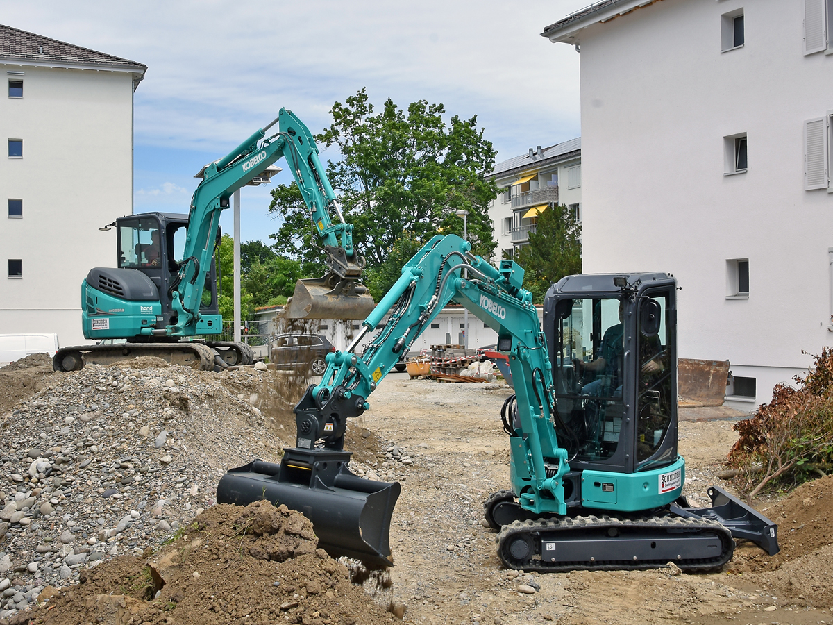 Ein umfassendes Hydraulik-Upgrade gegenüber ihren Vorgängern erhielten auch die im vergangenen Jahr vorgestellten Kobelco SK34SR-7 (3,55 t, 18,9 kW) und SK39SR-7 (3,94 t, 18,9 kW). Beim Graben werden die Durchflussmengen der drei installierten Pumpen automatisch zugunsten hoher Kräfte an den spezifisch verstärkten Auslegern und den jeweils zwei verfügbaren Stielen optimiert.