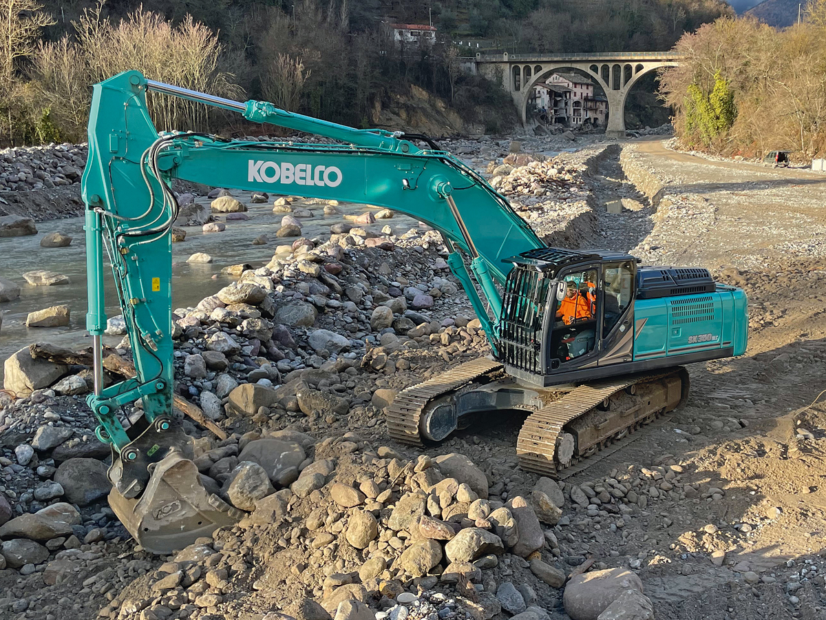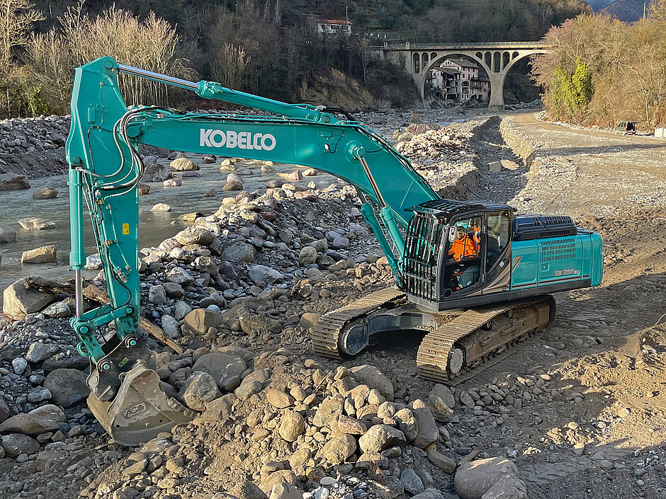 Auf »K-Load«, »K-Eye Pro« und »K-Dive« hören im Übrigen die neuen Assistenz- und Steuerungssysteme von Kobelco, die zu einem effizienteren, vor allem aber auch sichereren Baustellenbetrieb beitragen sollen. Die Echtzeit-Verwiegung »K-Load« ermöglicht dem Baggerführer die nahtlose und unterbrechungsfreie Erfassung der Schaufellast direkt beim Aushub oder in der Beladung von Lkw. Ohne das Risiko von Über- oder Unterladungen werden dadurch Ladevorgänge deutlich beschleunigt. Bereits seit gut einem Jahr bewährt sich das Antikollisions-System »K-Eye Pro« in der japanischen Baupraxis: Drei Präzisionskameras überwachen kontinuierlich das Arbeitsumfeld des Baggers. Eine KI-gestützte Software analysiert die Bilddaten und unterscheidet zuverlässig zwischen ungefährlichen Objekten und gefährdeten Personen. Bewegt sich eine Person in den Gefahrenbereich, löst »K-Eye Pro« einen akustischen und optischen Alarm für Baggerführer und Umfeld aus, reduziert die Ausleger- und Schwenkgeschwindigkeiten und bringt die Maschine falls notwendig zum Stillstand. Sie brachte Kobelco übrigens ins Finale um den Bauma-Innovationspreis 2025; auf der Messe wird sie live und mit Zugriff auf reale Maschinen in Europa und Übersee präsentiert: die Kobelco-Fernsteuerungsplattform »K-Dive«. Mehrere Jahre Entwicklung stecken in dem System, das über ein 1:1-Bagger-Cockpit mit zahlreichen Bildschirmen und Echtzeit-Transfer aller Betriebsdaten und Steuerbefehle die vollständige und präzise Fernsteuerung von Kobelco-Baggern mit den unterschiedlichsten Arbeitsausrüstungen ermöglicht.d