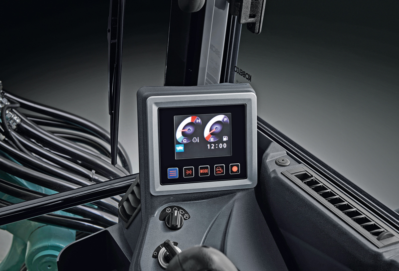 Das serienmäßige Farb-Display unterstützt den einfachen Zugang zu Betriebshistorie, Wartungszyklen und Maschinendaten wie Kraftstoffstand und Wassertemperatur. Auch der Hydraulikölfluss zu den Anbaugeräten kann darüber eingestellt werden. Im Energiesparmodus passen die SK50SRX-7 und SK58SRX-7 den S-Modus an, um nach Herstellerangaben im Vergleich zum H-Modus 26 % weniger Kraftstoff zu verbrauchen (SK58SRX). Ein Schalter für die automatische Drehzahlabsenkung ist serienmäßig eingebaut.