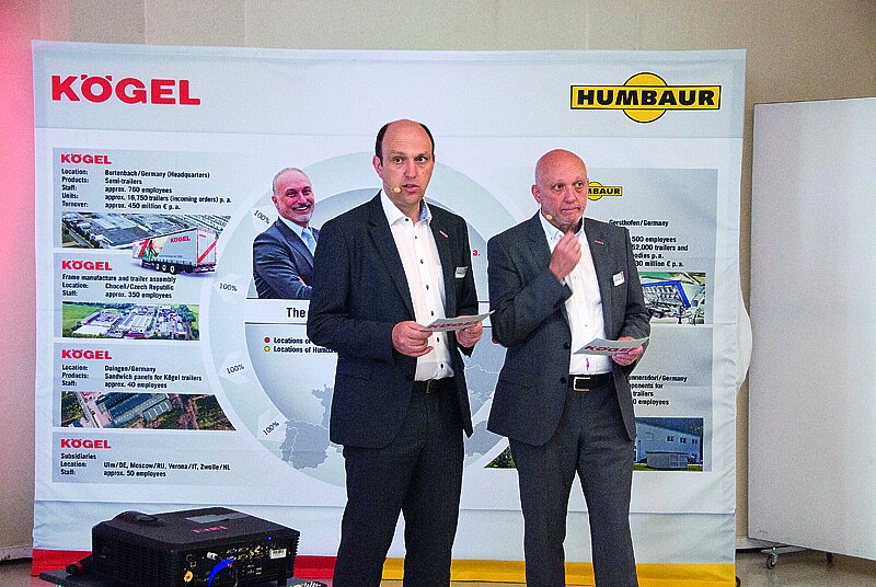 Zuvor hatte Kögel-CEO Thomas Heckel zusammen mit seinen Geschäftsführer-Kollegen die aktuellen Zahlen der Unternehmensgruppe Kögel-Humbaur erläutert, die im vergangenen Jahr mit mehr als 1 700 Mitarbeitern an insgesamt neun Standorten einen Umsatz von rund 580 Mio. Euro erwirtschaftet und dabei gut 68 000 Fahrzeuge abgesetzt hat. »Wir sind so gut wie schuldenfrei, unsere Eigenkapitalquote liegt bei 56 %. Wir sind rentabel, wettbewerbsfähig und auf der Höhe der Zeit. Damit sind wir für die Zukunft optimal gerüstet«, betonte Thomas Heckel.