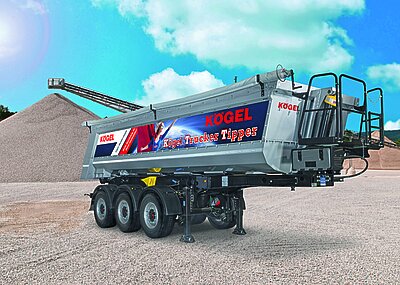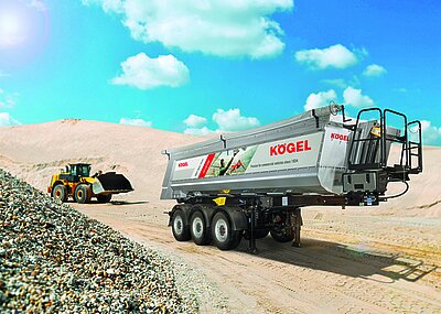 Auf der IAA in Hannover wird ein 3-Achs-Mulden-Kipper mit 24 m³ Ladevolumen zu sehen sein, und zwar in der Variante mit einem 4 mm starken Muldenboden aus vergütetem Hardox-450-Stahl, Seitenwänden aus einem hochverschleißfesten 5 mm starken Aluminiumblech sowie einer Rückwand aus einem hochverschleißfesten 7 mm starken Aluminiumblech. Diese Kombination eignet sich laut Kögel optimal für den Transport von Baustoffen wie Schotter oder Kies. Außerdem: