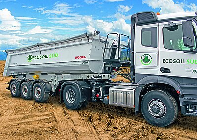 So kommt an Stellen mit hohem Verschleiß hochwertiger Stahl zum Einsatz und an den Seitenwänden und der Rückwand mit wenig Abrieb das leichte Aluminium. Im Vergleich zu einem Kögel-Mulden-Kipper mit 4 mm starken Stahl-Seitenwänden und einer 5 mm starken Stahl-Rückwand lassen sich mit den neuen Aluminiumbordwänden und der Aluminiumrückwand bis zu 430 kg an Eigengewicht einsparen.