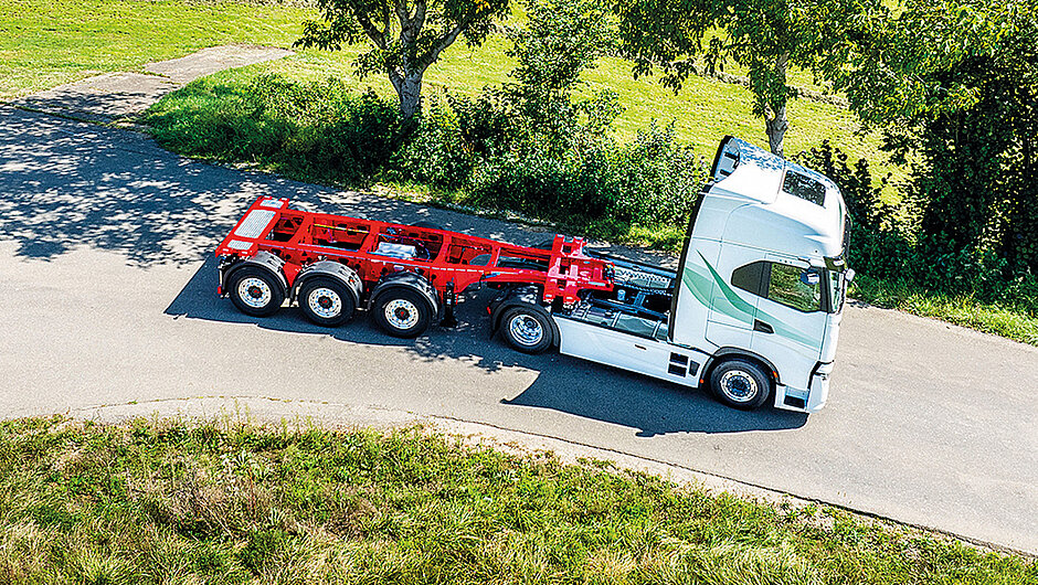 Mit einem möglichen Eigengewicht ab 2,9 t eignet sich der Kögel Port 20 optimal für den Transport schwerer 20-Fuß-Container. Der nach hinten versetzte Radstand sorgt dabei für eine erhöhte Sattellast und verbessert die Fahrstabilität. Optional kann das Chassis für grenzüberschreitende Transporte mit einer zweiten Ladeposition ausgestattet werden, die die Sattellast auf bis zu 30 % erhöht. Diese Variante ermöglicht zudem den sicheren Transport von Wechselbrücken der Typen C715 und C745.
