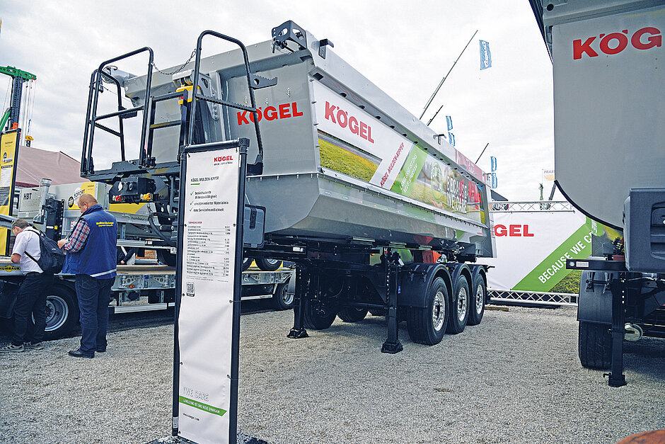 Auf der Bauma hat Kögel seinen Kipper in erneuerter Ausführung vorgestellt und dabei mit dem Upgrade zentrale Kundenwünsche berücksichtigt. Davon zeugten während der Messe zwei Exponate: eine thermoisolierte Mulde für den Asphalteinbau sowie eine Vollstahlrundmulde für Schüttguttransporte.