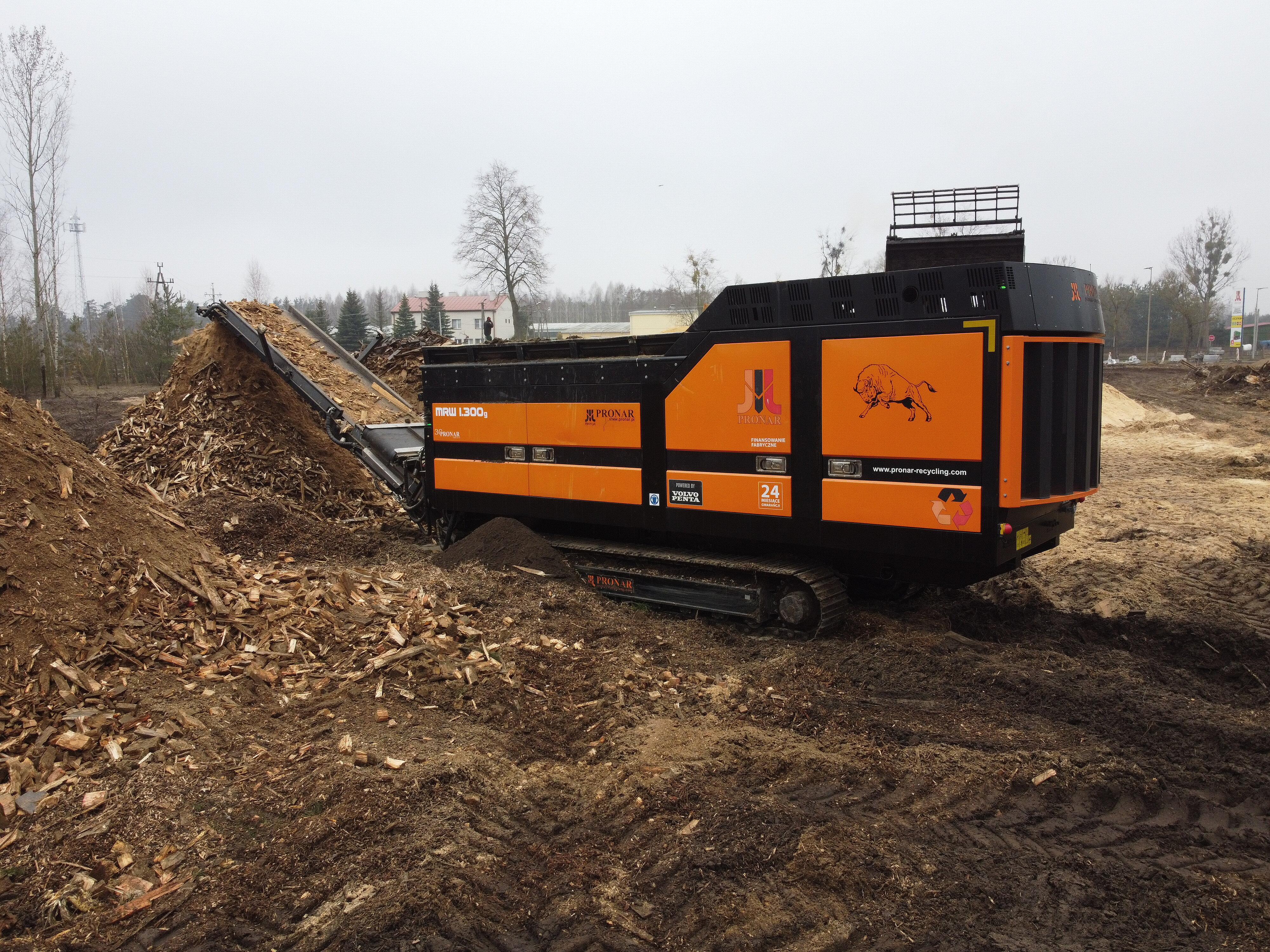 PRONAR Trommelsiebe, wie das auf der IFAT gezeigte MPB20.55GH, können aufgrund individuell gestaltbarer Lochmuster mit fast unendlich vielen Varianten ausgestattet werden. Aufgrund einer ausgeklügelten Mechanik können die Trommeln innerhalb von 15 Minuten gewechselt werden. Eine Besonderheit sei das Raupenfahrwerk. Die fein ansteuerbare Hubkinematik sorge dafür, dass die Siebtrommel auf praktisch jedem Untergrund optimal ausgerichtet werden könne. Sechs Meter lange Austragsbänder an Heck- und Seitenaustrag ermöglichen eindrucksvolle Haldenkapazitäten.