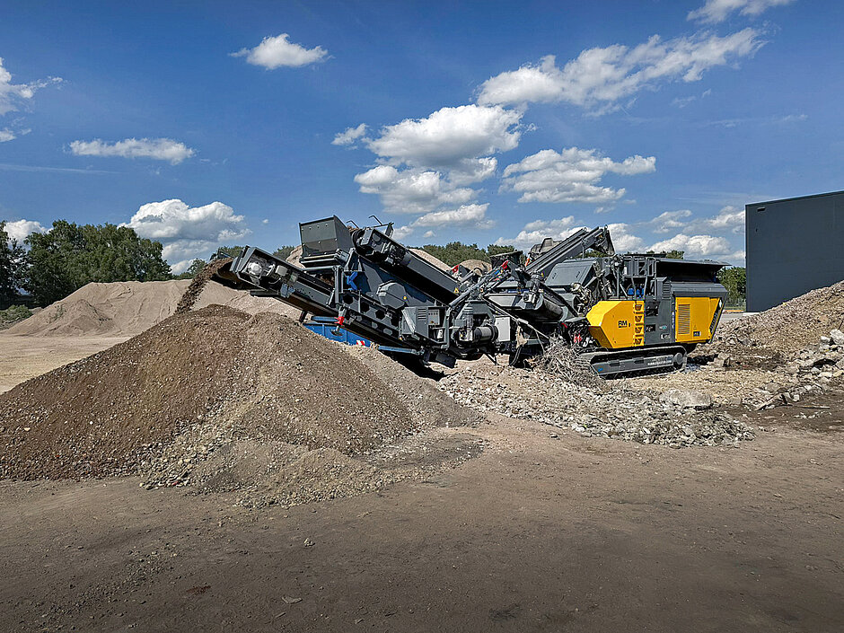 Wer eine hochfrequente, nahezu brutale Absiebung auch von extrem adhäsivem Material fordert, ist laut Aussage von Kölsch mit der raupenmobilen »Portafill MR-5X« gut aufgestellt. Die Freischwinger-Siebmaschine verfügt über zwei Siebdecks und kann bis zu drei Fraktionen ausgeben. Der Siebkasten ist hydraulisch anhebbar und erlaubt so den einfachen Wechsel der Unterdeck-Siebbeläge. Auf der RATL wird die Portafill alle drei Austragsoptionen nutzen.