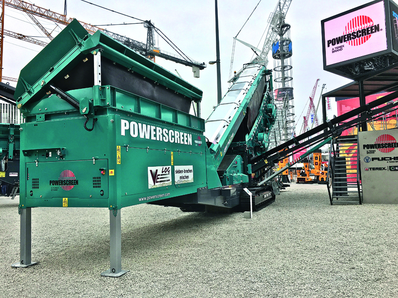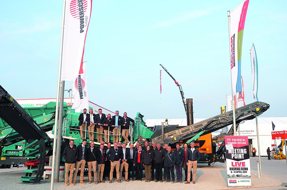 Kölsch und Christophel versorgen Kunden in Deutschland seit Langem mit Maschinen für die mobile Aufbereitung mineralischer Baustoffe. Auf der Bauma kamen Maschinen hinzu für die Nassaufbereitung sowie Shredder und Siebtrommeln für Grünabfall, Holz und die Abfallaufbereitung. Erstmals ausgestellt wurden eine Pronar-Trommelsiebmaschine und eine Matec-Kammerfilterpresse für die Wasseraufbereitung. Zu einem Publikumsmagneten mauserte sich nach Angaben von Kölsch und Christophel eine Terex-­Washing-Systems-Lösung: Fünf Gehminuten vom Kölsch-Stand entfernt war eine Kieswaschanlage in Aktion zu erleben. Gezeigt wurden darüber hinaus ein Sieb von Powerscreen, zwei raupenmobile Brecher von Rubble Master, ein kompakter Brecher von City­equip, je ein Kegelbrecher und Schwerlastsieb von Portafill und drei Förderbänder von Telestack.